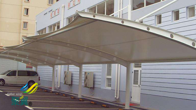 膜結構車棚遮風擋雨|膜結構車棚標識效果