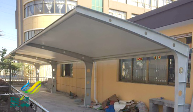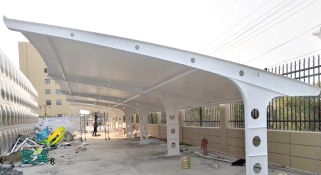膜結構車棚PVC膜材料的面層,在保質期內應具有穩定的抗腐蝕、抗紫外線侵蝕的能力,膜結構車棚表面具有自結性能。 建立膜結構車棚的材料也是越來越多,其中就有膜結構的,不過膜結構車棚在建立的時候,也還是有很多注意事項的。 膜結構車棚內部采用Φ38鍍鋅圓管與車棚框架焊接,加強棚頂部強度,可讓膜結構車棚棚內感覺寬敞明亮,停靠車輛輕松方便,完全符合停車棚制作要求規范。