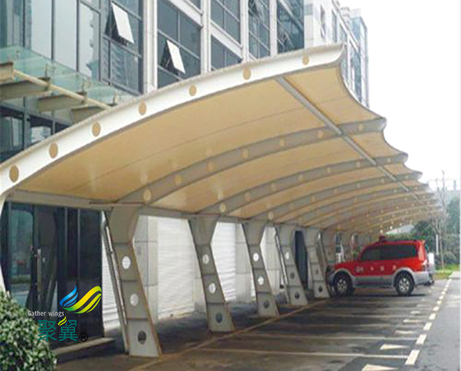 膜結(jié)構(gòu)車棚,相對(duì)不同的停車棚還是很有優(yōu)勢(shì)的,不僅構(gòu)造簡單,材料少,花樣也很多,一般的用戶都會(huì)選擇膜結(jié)構(gòu)車棚