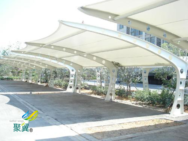 膜結構車棚能源消耗低,膜結構車棚能夠保證適當的自然光散漫在室內,因為膜結構車棚的的反射性較高和光吸收性較低。膜結構車棚的重量輕、可以不需要內部支撐面就能夠實現大跨度的覆蓋,目前在學校、政府、住宅等地方有著**廣大的應用。