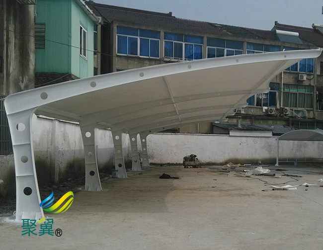 自重輕,膜結構車棚膜建筑可以不需要內部支撐面大跨度覆蓋空間,這使人們可以列靈活、更有創意地設計和使用建筑空間。膜結構車棚具有傳統屋頂所不具備的藝術感造型。