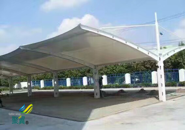 膜結構車棚透光率就確保了不會出現這樣的問題,從側面可以看出膜結構車棚膜構造的車棚使用的壽命要更加的長久。