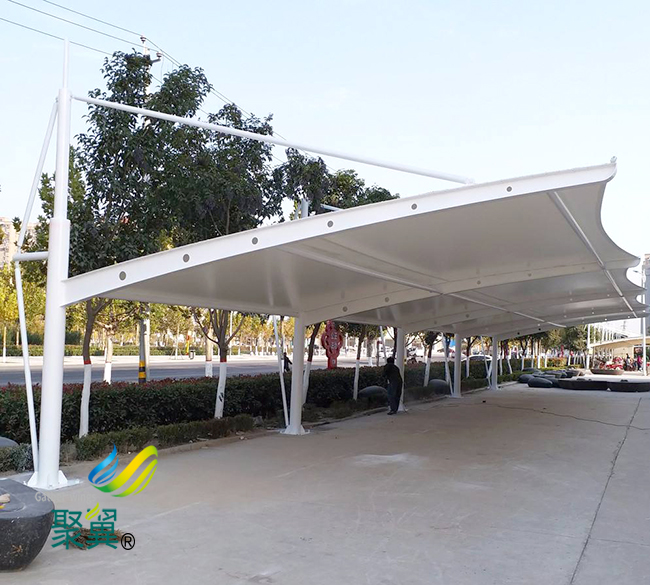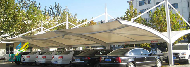 膜結構車棚施工周期較短,和傳統的停車棚相比,膜結構停車棚的施工工期更加短,因為膜結構車棚的所用加工、制作工程都是在工廠內設計完成的,在現場只需要安裝一下即可。