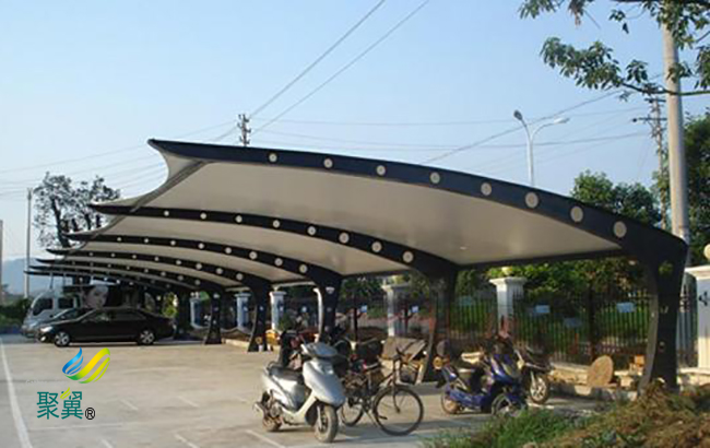 經常露天的車輛,要比停放在車棚里的車輛損耗得快。膜結構的車棚可以幫您辦到。膜結構車棚可以給您的愛車更多愛護,使您的愛車擁有更長壽命。而且有的膜結構車棚采用了永久性的膜材,使用壽命可以達到三、四十年。