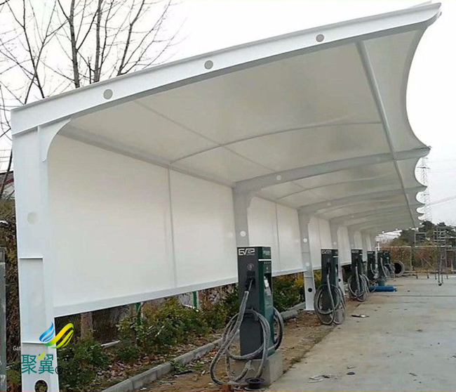 膜結(jié)構(gòu)車棚適用高強(qiáng)度柔性薄膜材料經(jīng)受其它材料的拉壓作用而形成的穩(wěn)定曲面,膜結(jié)構(gòu)車棚能承受一定外荷載的空間結(jié)構(gòu)形式。膜結(jié)構(gòu)車棚造型自由、輕巧、柔美,充滿力量感,阻燃、制作簡易、安裝快捷、節(jié)能、易于、使用安全等優(yōu)點(diǎn),因而使它在世界各地受到廣泛應(yīng)用。