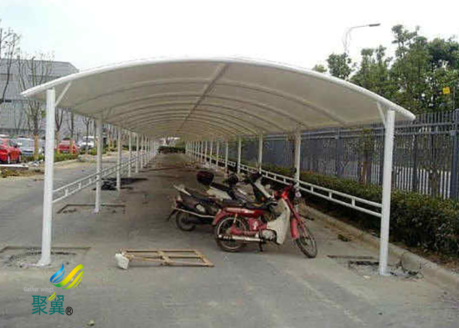 膜結構車棚大跨結構得到的長足的發展,已被廣泛的應用于體育場館,候機大廳,游樂場館和多功能會大廳等場所的大型結構之中,其中,膜結構車棚薄膜結構又以其優美的造型,卓越的性能,膜結構車棚和其他結構形式無法比擬的優點,得到了越來越多廣泛的應用。