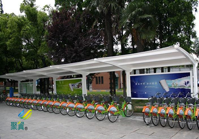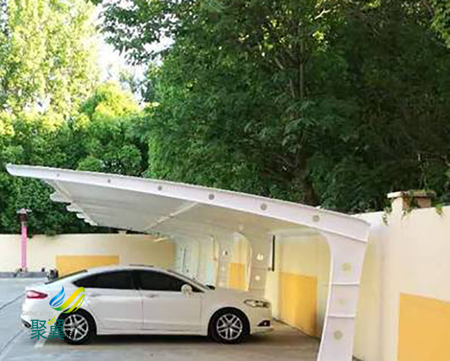 膜結構車棚自重輕,具有良好的受力特點——成為大跨度空間結構的主要形式之一。停車場的規劃和建設成為現代城市規劃的重要組成部分,在以后的建設里會變得越來越重要。 膜結構車棚輕巧、別致的造型在停車場及候車廳的建設中擔當了重要角色,除了滿足防風雨、防日曬等基本功能外,并有較好的標識招攬效果,展現了人們個性化的一面。