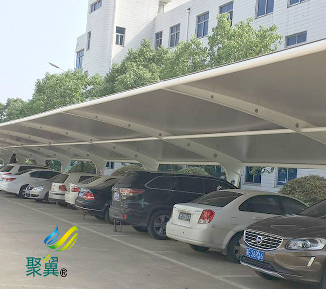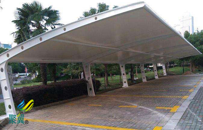 膜結(jié)構(gòu)車棚是由上面造型獨(dú)特的膜材質(zhì)和下面骨架的鋼結(jié)構(gòu)、鋼索 組成的,現(xiàn)場(chǎng)裝置即可完結(jié)。
