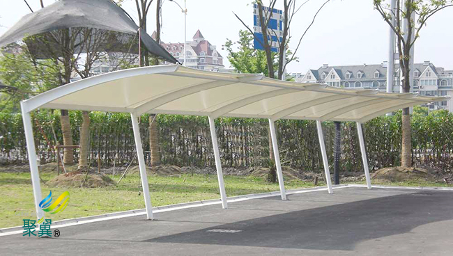 膜結(jié)構(gòu)車(chē)棚防火性與抗震性,膜結(jié)構(gòu)車(chē)棚建筑所采用的膜材具有卓越的阻燃性和耐高溫性,故能很好的滿(mǎn)足防火要求。由于膜結(jié)構(gòu)車(chē)棚結(jié)構(gòu)自重輕,又為柔性結(jié)構(gòu)且有較大變形能力,故抗震性能好。