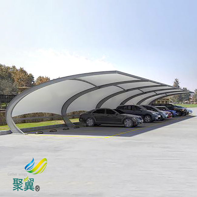膜結構車棚景觀施工周期短。膜結構車棚施工項目的加工生產均在工廠完成,可減少現場施工時間,減少施工交叉。與傳統的施工方法相比,膜結構車棚建筑的施工周期可縮短至少一半,一般膜結構車棚工程可在兩個月內完成,不影響其他工程的施工進度。