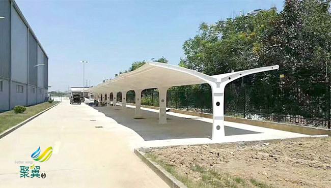 膜結構車棚遮陽、防雨防止雨水和紫外線帶來的損傷。鋁合金車棚抗紫外線、隔熱防塵、主動清洗、防霜防雨防雪七大功用,不只能為咱們的座駕抵御飄落的樹葉粉塵、精心呵護愛車,一起還能有用間隔陽光中的熱輻射,防止車內(nèi)高溫,膜結構車棚維護愛車防止風吹日曬而過早老化。