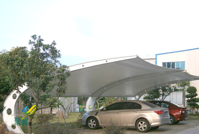 膜結(jié)構(gòu)車棚是一種高強薄膜和鋼結(jié)構(gòu)、拉索在經(jīng)過一定的方式組合后而成的一種棚,這種分離的方式使膜結(jié)構(gòu)車棚的內(nèi)部產(chǎn)生了一定的預(yù)張應(yīng)力構(gòu)成了空間的外形,這也是作掩蓋結(jié)構(gòu)并承受一定外荷載的空間結(jié)構(gòu)的方式構(gòu)造。