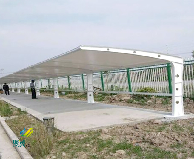 鋼構(gòu)造膜結(jié)構(gòu)車棚的支架構(gòu)造經(jīng)過鋼資料的拼接焊接而成,膜結(jié)構(gòu)車棚特性是結(jié)實,也能遮風(fēng)擋雨,就是外型單一,拆裝比擬費事,但是抗震防風(fēng)才能強。