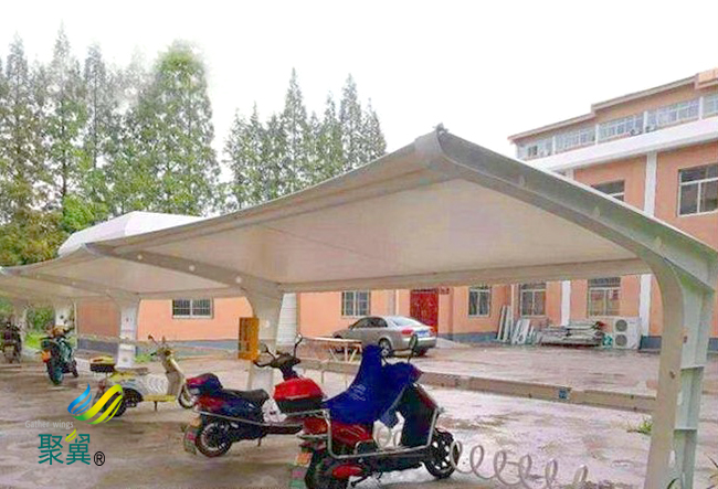 膜結構車棚施工周期較短,和傳統的停車棚相比,膜結構車棚的施工工期更加短,因為它的所用加工、制作工程都是在工廠內設計完成的,在現場只需要安裝一下即可。