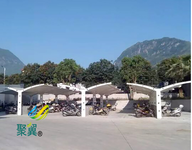 藝術性, 膜結構車棚與造型學,色彩學為依托,可結合自然條件及民族風情,根據建筑師的創意建造出傳統建筑難以實現的曲線及造型,膜結構車棚一建筑師的浪漫設想,享受大自然般的浪漫空間。 膜結構車棚大跨度,膜結構一改傳統建筑材料而使用膜材,其重量只是傳統建筑的三分之一。而且膜結構車棚可以從根本上克服傳統膜結構車棚的大跨度(無支持)建筑上所遇到的困難,可創造巨大的無遮擋的可視空間。