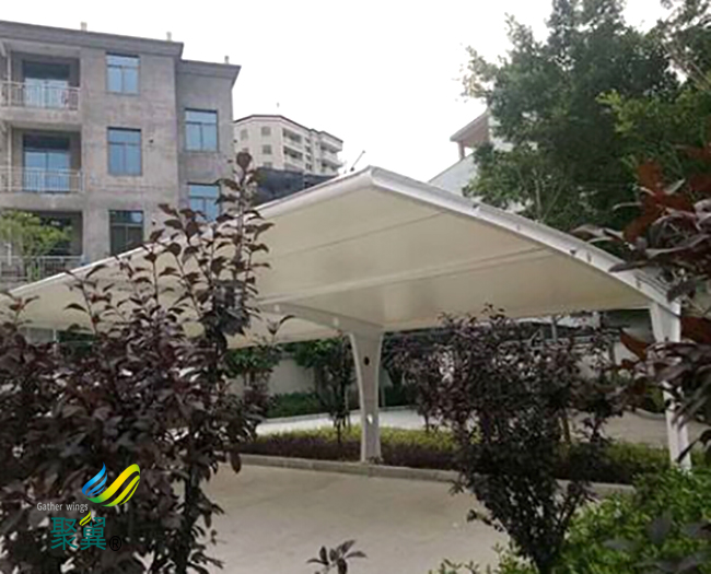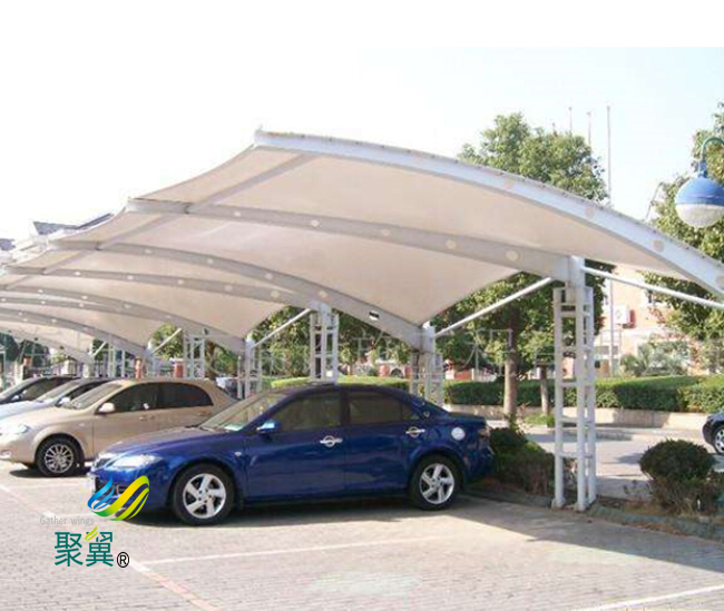 膜結構車棚具有良好的自潔性、隔熱性和耐久性,還有外型新穎、自重輕等的優點,所以被普遍的應用在各類休閑小品和輕型大跨度無柱空間以及輕型屋蓋建筑結構上。 在建筑膜結構車棚時,我們首先要考慮大小和牢固性,這是最基本的,只有這樣才能夠讓我們的膜結構車棚更加安全穩固,不會給我們的車輛帶來麻煩和損害。 膜結構車棚展示了一種力的均衡美感,膜結構車棚的膜構造是一種張力結構,在一定的張力作用下有一定的外形和剛度,膜結構車棚是一種受力最為合理的結構方式。