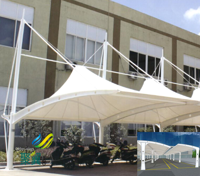 藝術性。膜結構車棚是一種新型的建筑結構形式,膜結構車棚不同于中國傳統建筑。由于其占地面積小、可便于安裝拆卸等特點,設計師可以充分發揮自己的想象力,膜結構車棚設計出造型多樣、不拘一格的停車棚。