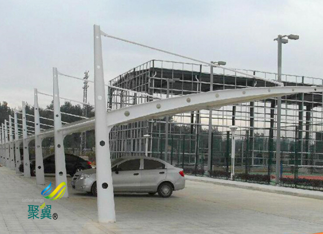 這樣的建筑能夠說在建筑業是比擬前沿的建筑技術,運用這樣的膜結構車棚建筑技術除了使建筑的效率進步了之外,在藝術外型上更是有了較大的打破。