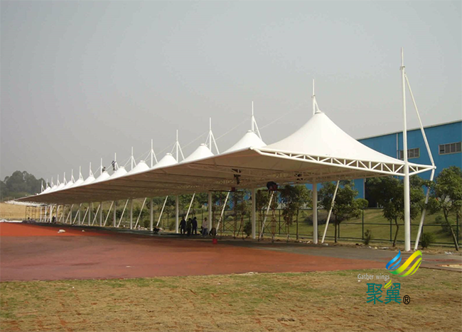 (4)膜結構車棚膜結構的環邊,結構落地位置,或膜邊界落地位置,須設置足夠的消防滅火設施。