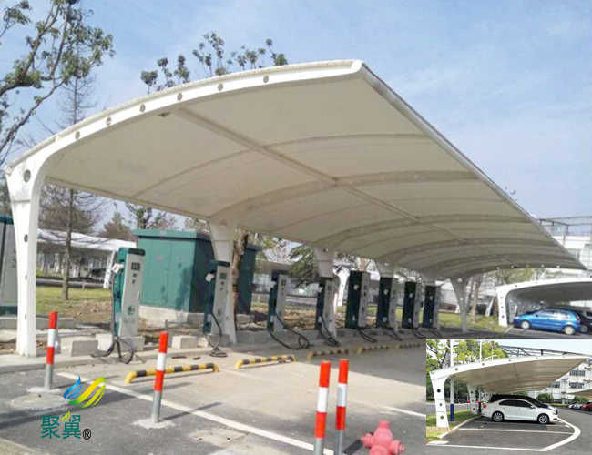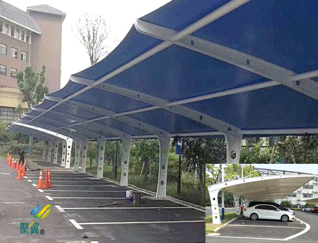膜結構車棚已經融入到了我們的生活中,外觀靚麗,膜結構車棚實用性較高深得用戶者們的喜愛,膜結構車棚多種優點豐富便捷了我們的生活。