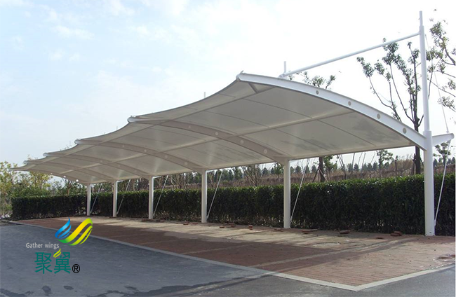 膜結構車棚在現在社會中已經成為了人們生活中必不可少的一部分,但是膜結構車棚的膜材是分為有很多種的,比如膜結構車棚的PTFE膜材主要性能是,可以抵御硫酸、鹽酸、酸、硝酸、熱得氫氧化鈉溶液或氮氧化合物等最強刺激性有機動物,不僅僅如此膜結構車棚的膜材PTFE還不容易被乙醇、酯類、大環內酯和汽油等。