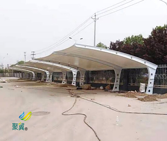 膜結構車棚打破了純直線建筑風格的模式,以膜結構車棚獨有的優美曲面造型,簡潔、明快、剛與柔、力與美的完美組合,膜結構車棚同時給建筑設計師提供了*大的想象和創造空間。