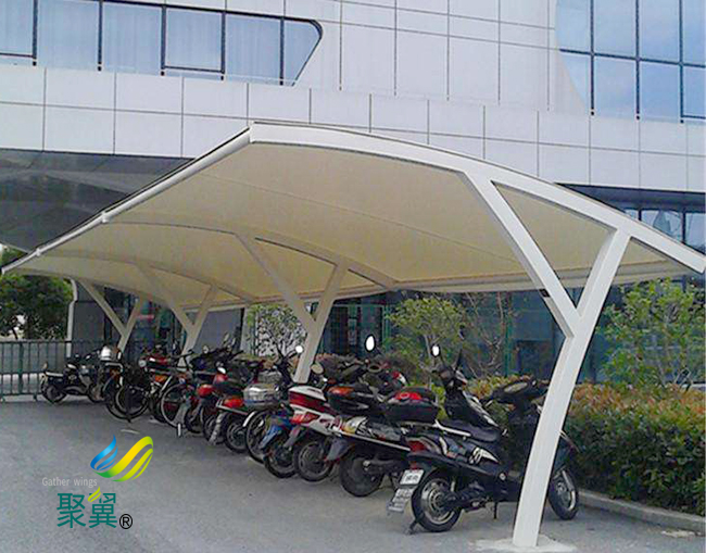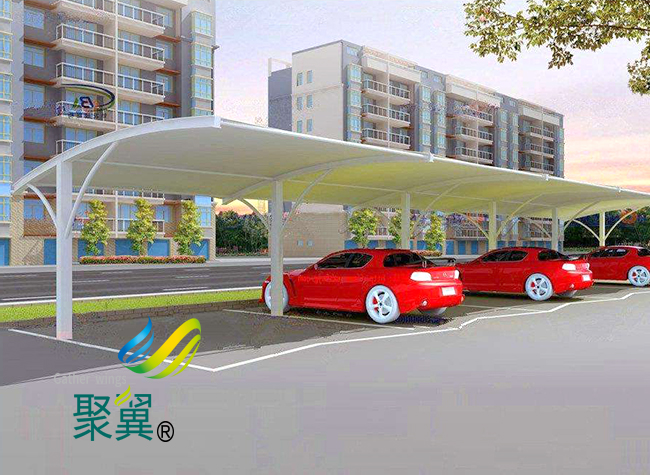 膜結構車棚具有良好的耐火和抗沖擊性能。由于建筑采用了阻燃成分和耐高溫成分的膜材料,這也是膜結構車棚景觀的本質防震。