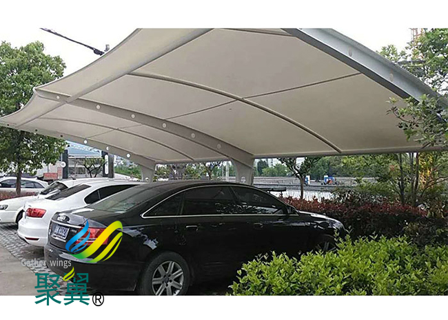膜結構車棚除了一般雨蓬不可比擬的實用、耐用、遮風擋雨的功能外,膜結構車棚更是一座雕塑,一件藝術品,給人美的視覺享受。