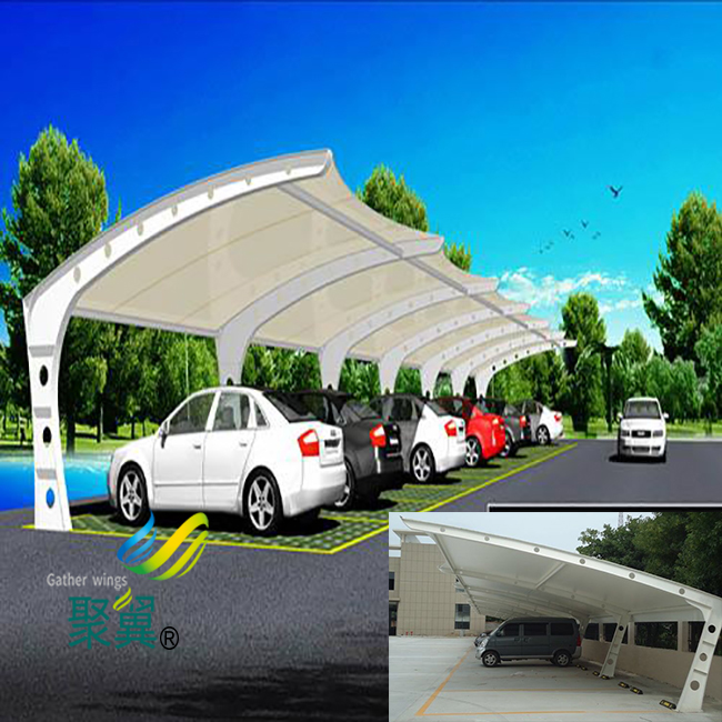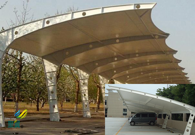 膜結構車棚,因為自重輕,膜結構車棚膜建筑可以不必要內部支持面大跨度覆蓋空間,這使人們可以列天真、更有創意地設計和使用建筑空間。