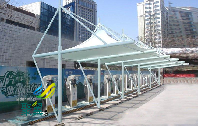 公共 膜結構車棚充電樁還無法順應新能源汽車快速發展的趨勢,技術還不夠成熟,標準也不一致造成的。但是相信隨著技術的發展和成熟,日后,公共 膜結構車棚充電樁的數量會越來越多,公共充電樁與汽車企業之間的銜接也會越來越緊密,像充電樁無法給 膜結構車棚汽車充電的現象也就會解決了。