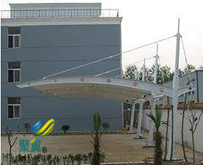 膜結構車棚阻燃性和耐久性:采用PTFE膜材的張力膜的耐熱性、耐候性、抗藥性、高強度、防火功能,且不易老化,長期使用后仍能保持膜結構車棚原有的強度、拉膜可分為永久性和半永久性結構。