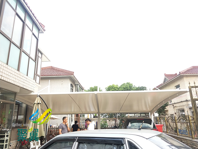 膜結構車棚透光、自潔性:常用建筑膜材的外觀為PVDF資料涂層,存在物理服從動搖與良好的自潔效果,膜結構車棚膜外觀粉塵一般環境下雨水可自行沖洗干凈,同時包管建筑的使用壽命。