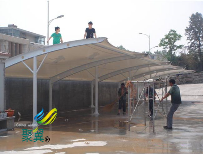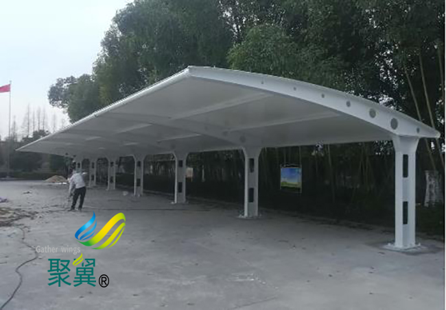膜結(jié)構(gòu)車棚廠家車棚是一種新型、時尚的建筑結(jié)構(gòu),是由鋼結(jié)構(gòu)和建筑織物(膜材料)完美結(jié)合的產(chǎn)物,跨時代風(fēng)格的建筑結(jié)構(gòu)形式。膜結(jié)構(gòu)車棚這種形式能夠充分利用膜材的受力性能,形成輕巧、美觀、膜結(jié)構(gòu)車棚具有現(xiàn)代感的空間大跨曲面結(jié)構(gòu),并且施工簡單、快捷,成本低,在國內(nèi)外已經(jīng)被廣泛應(yīng)用于商業(yè)建筑、體育建筑、工業(yè)建筑、戶外設(shè)施、文化娛樂建筑等各種領(lǐng)域。