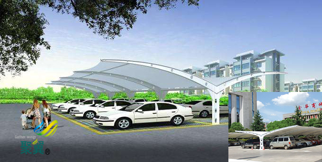 膜結構車棚動力損耗低膜材有較高的反射性及較低的光吸收低而且熱傳導性較低,這極大程度上阻礙太陽能進入棚內。別的,膜結構車棚膜材的半透明性確保了恰當的天然漫散射光照明棚內。