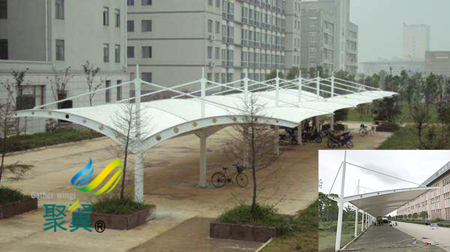 更短的膜結構車棚施工周期,景觀膜構造工程中一切加工和制造依設計均可在工廠內完成,在現場只停止裝置作業。相比傳統建筑的施工周期,膜結構車棚簡直要快一倍。