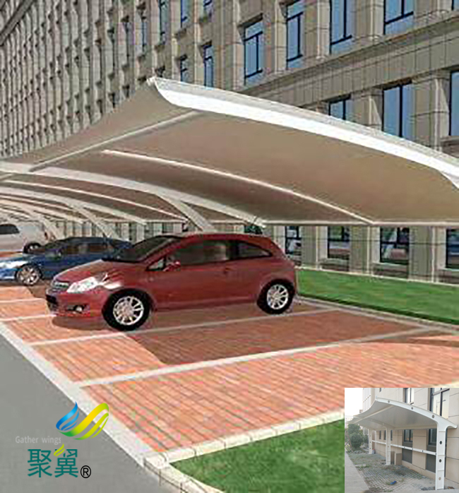 膜結(jié)構(gòu)車棚隔熱防塵:遮雨棚不但能隔斷陽光中的熱輻射,避免車內(nèi)高溫,還能為您的座駕遮擋空氣中洋溢的工業(yè)粉塵落葉鳥糞,精心呵護愛車。