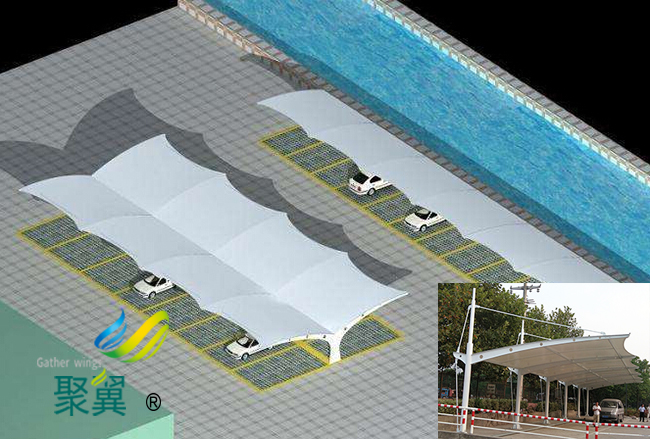 膜結(jié)構(gòu)車棚的規(guī)劃和建設(shè)成為現(xiàn)代城市規(guī)劃的重要組成部分,在以后的建設(shè)里會變得越來越重要。膜結(jié)構(gòu)車棚輕巧、別致的造型在停車場及候車廳的建設(shè)中擔(dān)當(dāng)了重要角色,膜結(jié)構(gòu)車棚除了滿足防風(fēng)雨、防日曬等基本功能外,膜結(jié)構(gòu)車棚并有較好的標(biāo)識招攬效果,展現(xiàn)了人們個(gè)性化的一面。