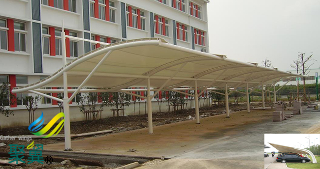 膜結構車棚的規劃和建設成為現代城市規劃的重要組成部分,變的越來越重要。膜結構工程輕巧、別致的造型在停車場及候車廳的建設中擔當了重要角色,除了滿足防風雨、防日曬等基本功能外,并有較好的標識招攬效果,展現了人們個性化的一面。