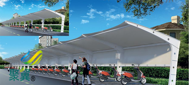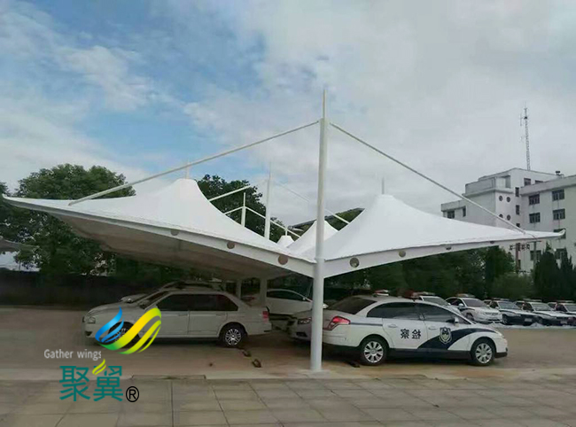 徐州市膜結構車棚跨度空間大指出其因為自重輕, 徐州市膜結構車棚修建能夠不需要內部支撐面大跨度掩蓋空間,這使大家能夠列靈活計和運用修建空間,描繪出愈加有構思的修建,上海聚翼遮陽設備有限公司。