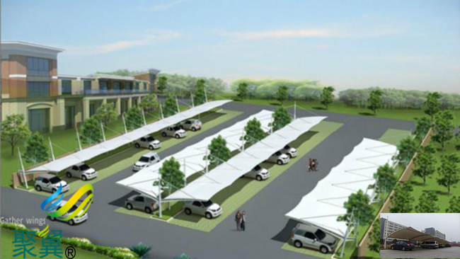 膜結構車棚工程中所有加工和制作均在工廠內完成,可減少現場施工時間,避免出現施工交叉,相對傳統車棚工程工期較短。