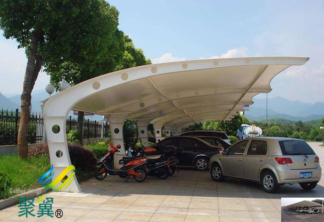膜結構車棚的特點是耐用、經濟、藝術、透光、耐候、抗沖擊、阻燃、耐溫、輕便、隔音,因此廣泛應用于建筑中。河北省滄州市黃驊市膜結構車棚是一種全新的建筑結構形式,它集建筑學、結構力學、精細化工與材料科學、計算機技術等為一體,具有很高技術含量。其曲面可以隨著建筑師的設計需要任意變化,結合整體環境,建造出標志性的形象工程。 河北省滄州市黃驊市膜結構車棚工期短: 膜建筑工程中所有加工和制作均在工廠內完成,可減少現場施工時間,避免出現施工交叉,相對傳統建筑工程工期較短。 自潔性 - 自始至終保持潔白美麗 河北省滄州市黃驊市膜結構車棚膜材料具有極高的非粘著性, 在我們日常使用不沾鍋時就可以體會到這一特性。膜材料的表面不僅 不易附著臟物及灰塵,而且其表面的灰塵會被雨水自然地沖洗干凈,所以 經過長年使用仍然保持外觀的潔凈及室內的美觀。都市化步伐的加快,汽車成為很多人的代步工具,而相對于汽車的停車位卻很少,河北省滄州市黃驊市膜結構車棚工期短的特點,可在停車位上擔當重要角色。河北省滄州市黃驊市膜結構車棚目前社會應用最為廣泛的建筑材料就是膜結構,但是對于大多數人來說不太了解膜結構是一種什么樣的建筑結構