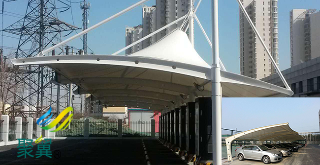 膜結構車棚卻能擺脫這一限制,因其材料的特殊性,可用于各種大跨度的車棚建造;