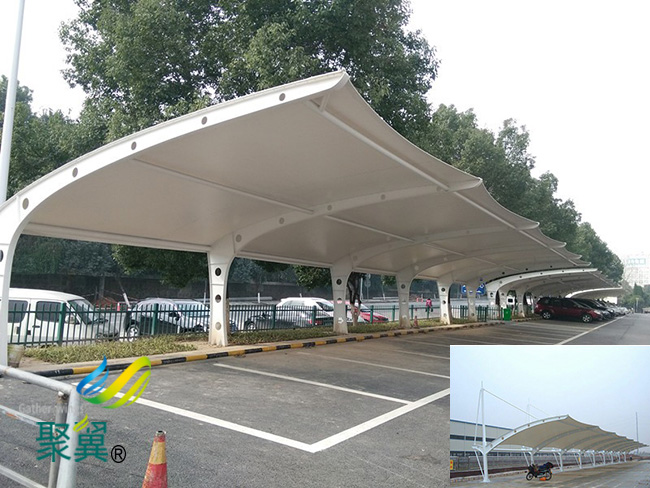 自行車棚屬于室外基礎(chǔ)建設(shè),風(fēng)水雨打是避免不了的。而膜材料具有高強(qiáng)度的特點(diǎn),再加上張拉技術(shù)的應(yīng)用,根據(jù)力學(xué)原因構(gòu)造圍城,使得膜結(jié)構(gòu)自行車車棚的支撐和強(qiáng)度遠(yuǎn)遠(yuǎn)高于其他材料。有的車棚采用永久性膜材,可使用三、四十年,做到了真正的經(jīng)久耐用。