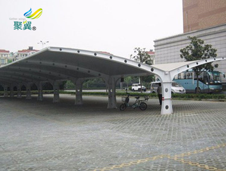 膜結構車棚中使用,可以營造自然寧靜的感覺,特別是有特殊需要停車棲息的空間,如公寓小區(qū)乳白色膜結構車棚的使用,能給住戶客人歸家般溫暖的港灣,適合每一個整天在外工作和出行的勞累人們。