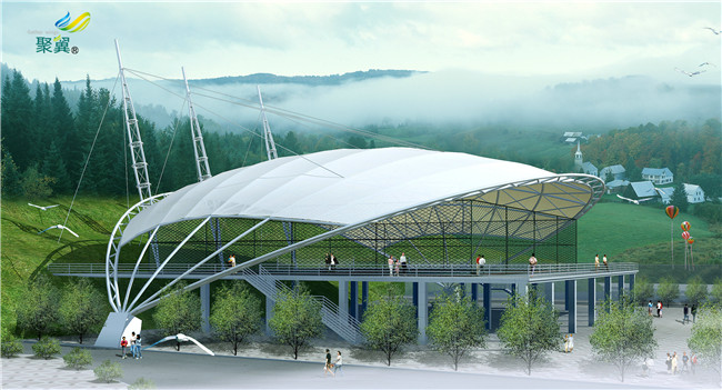建筑設計節點設計與膜建筑總體設計協調,選擇相適應的材料與工藝,同時滿足不同建筑環境的防腐、防水要求。至于節點美觀是無論如何重視都不過分,任何節點設計都應放到特定局 部與整體環境。