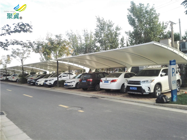 膜結構車棚在焊接時,有必要在兩片膜間加一層PFA或FEP作為助焊劑。