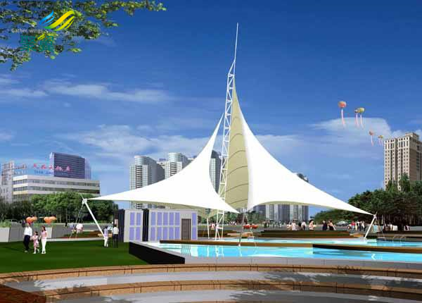 二.連接件:在裝置時要緊固各個部位的連接件,不能有一絲松動。連接件相當于各個部位之間的紐帶,若是出現問題,影響的不僅是整個張拉膜結構工程,乃至會由于前期沒發現這個問題,在將來形成人員傷亡;施工后應留意惡劣氣候影響,比方:勁風和雨雪