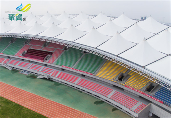 膜結構建筑具有防噪功能很有需要,在一些運動場膜結構,體育場膜結構,球場膜結構,廣場膜結構,舞臺膜結構等。膜結構建筑防噪功能的實現是通過膜結構聲學設計集中圍繞兩方面的聲學品質進行。1,如何屏蔽外部噪聲對建筑的影響;2,建筑輪廓對回聲作用與混響時間影響。噪聲與回聲需要考慮的因素截然不同,但兩者須同時考慮,井評價建筑聲環境綜合品質。