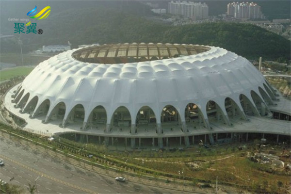 二、體育膜結構設備。膜結構停車棚在各大體育場、球館、各大舞臺等地域配備較多,為大量涌入車輛提供高效整齊劃一的停車位置,讓整個場所顯得井井有條、美觀大氣,對于交通疏導起到一定疏導作用,人們不會再為停車難發難。