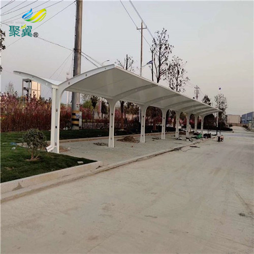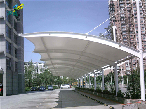 (4)膜結構單元的安裝應連續(xù),當無法連續(xù)一次性完成安裝作業(yè)時應采取可靠臨時固定措施,以便抵抗施工期間可能發(fā)生的強風,同時還要注意張拉膜面不積水。